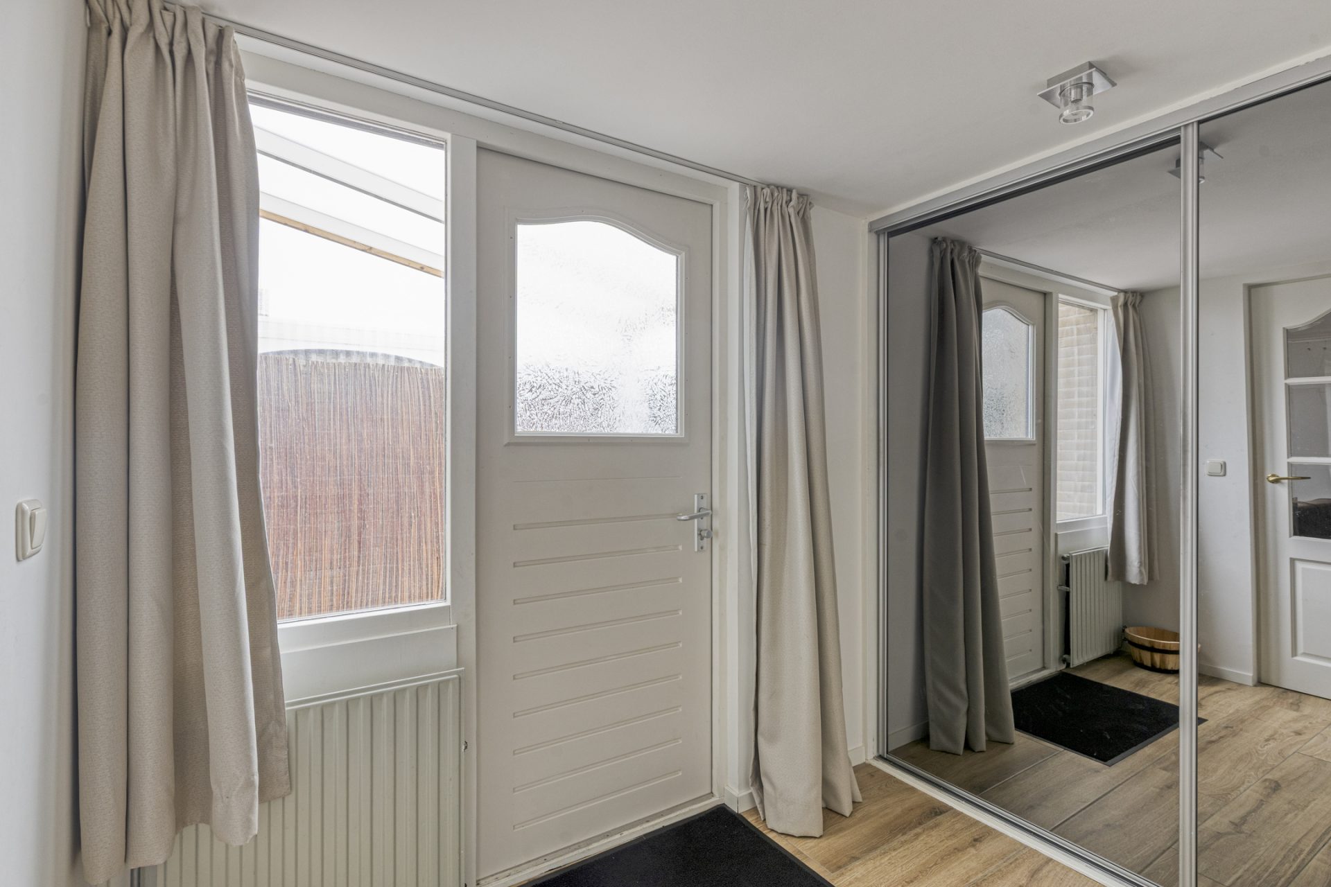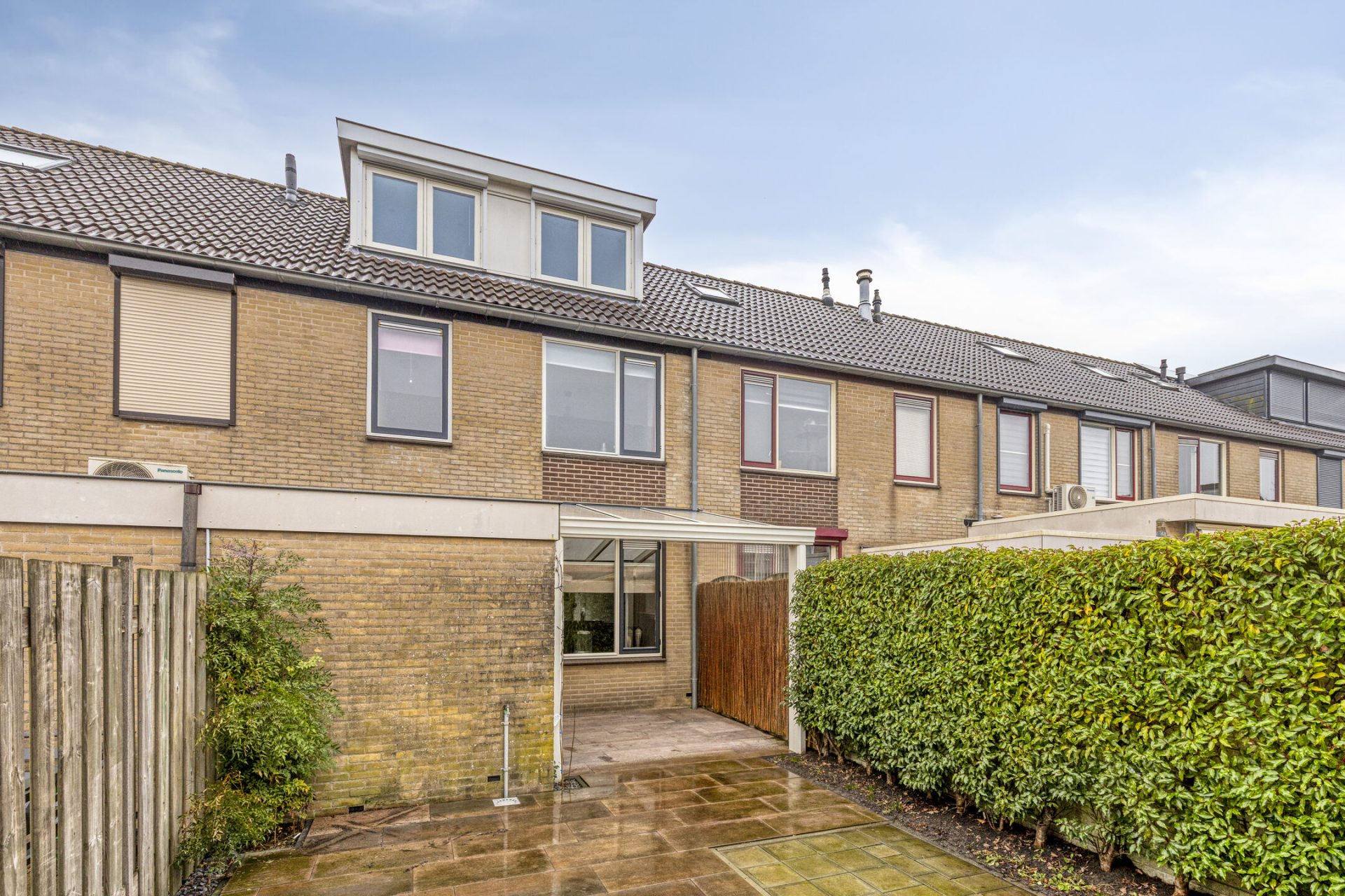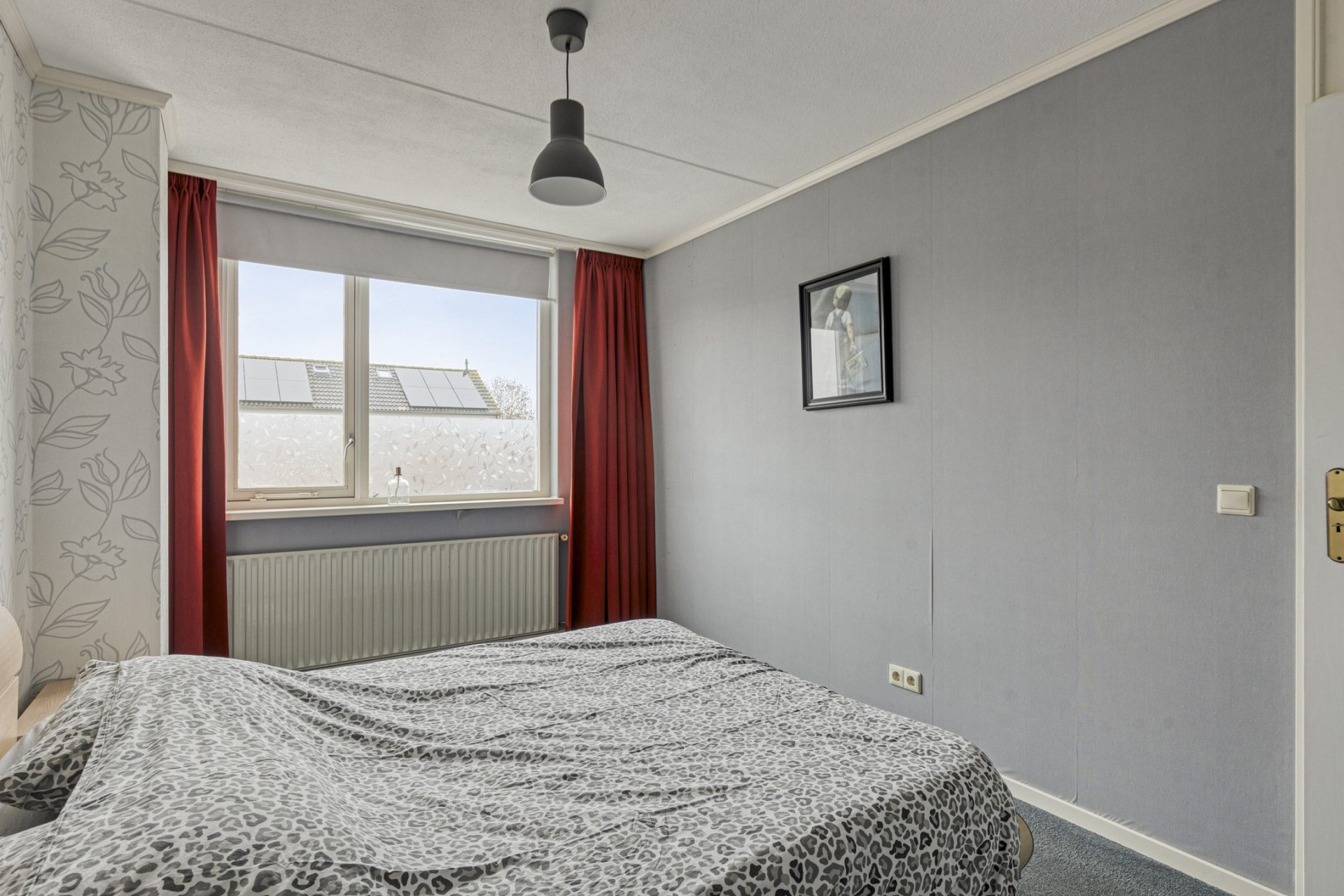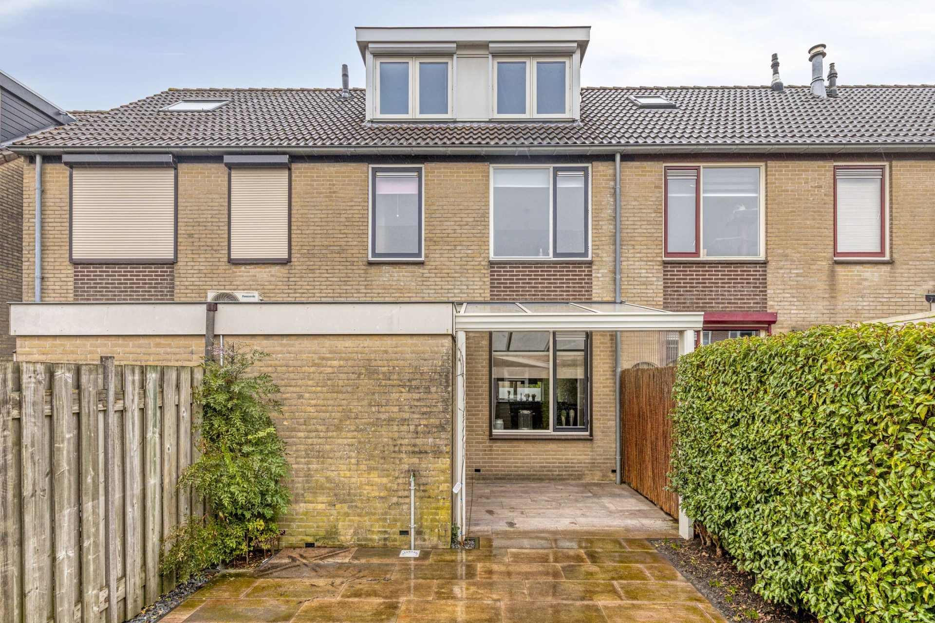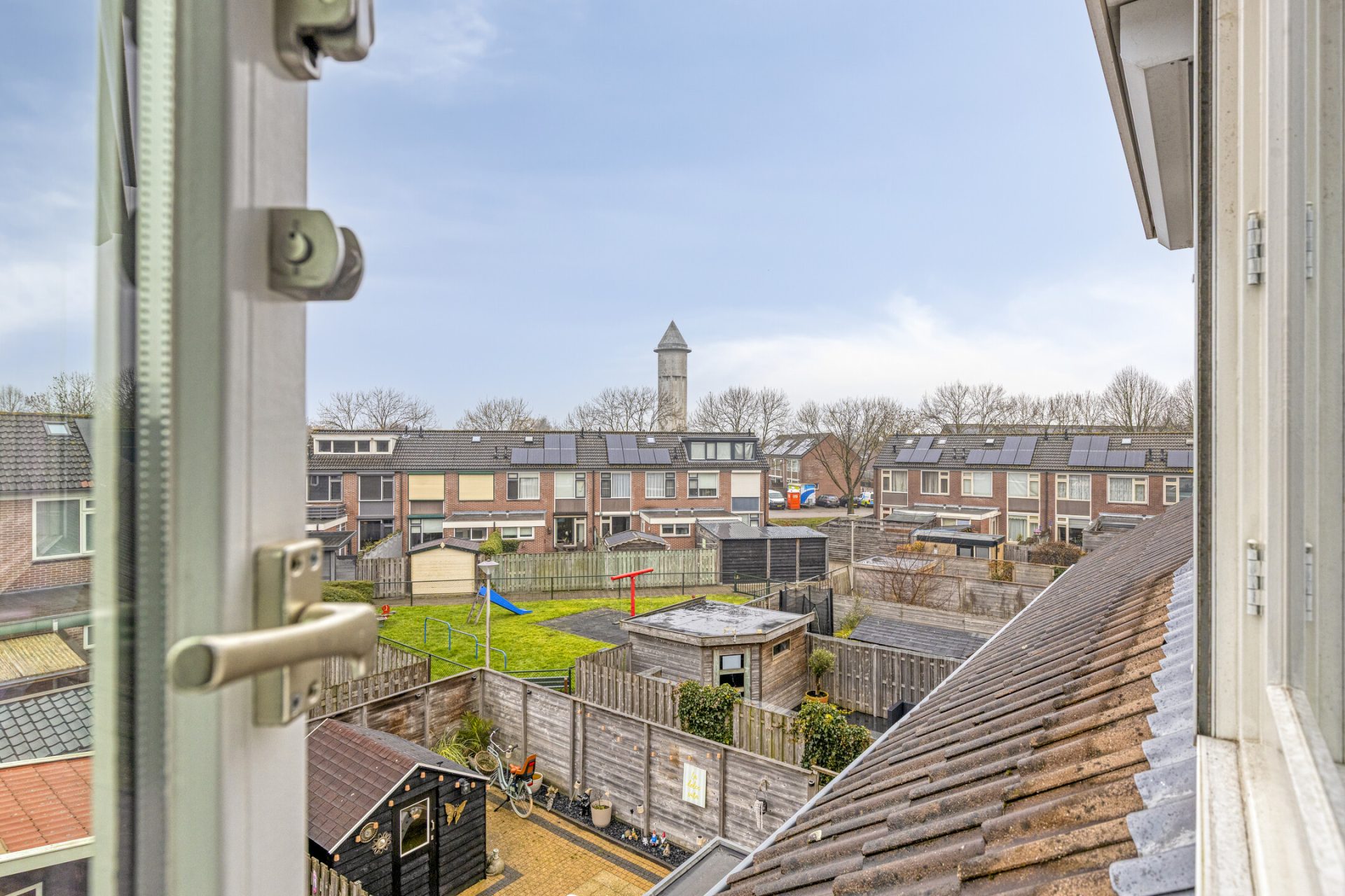 Vanuit de woonkamer loop je door naar de bijkeuken, die toegang biedt tot de ruime achtertuin met overkapping en een schuur. De tuin grenst direct aan een speeltuin aan de achterzijde van de woning, wat deze woning bijzonder geschikt maakt voor gezinnen met kinderen.