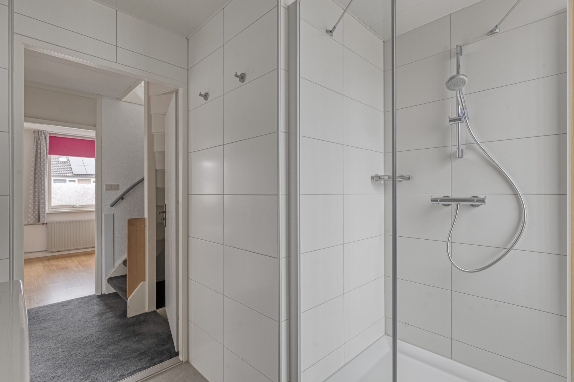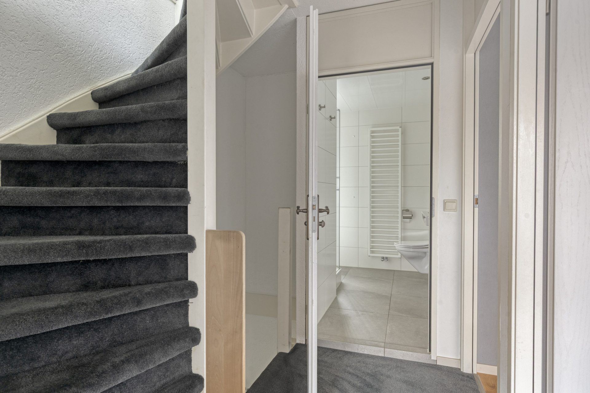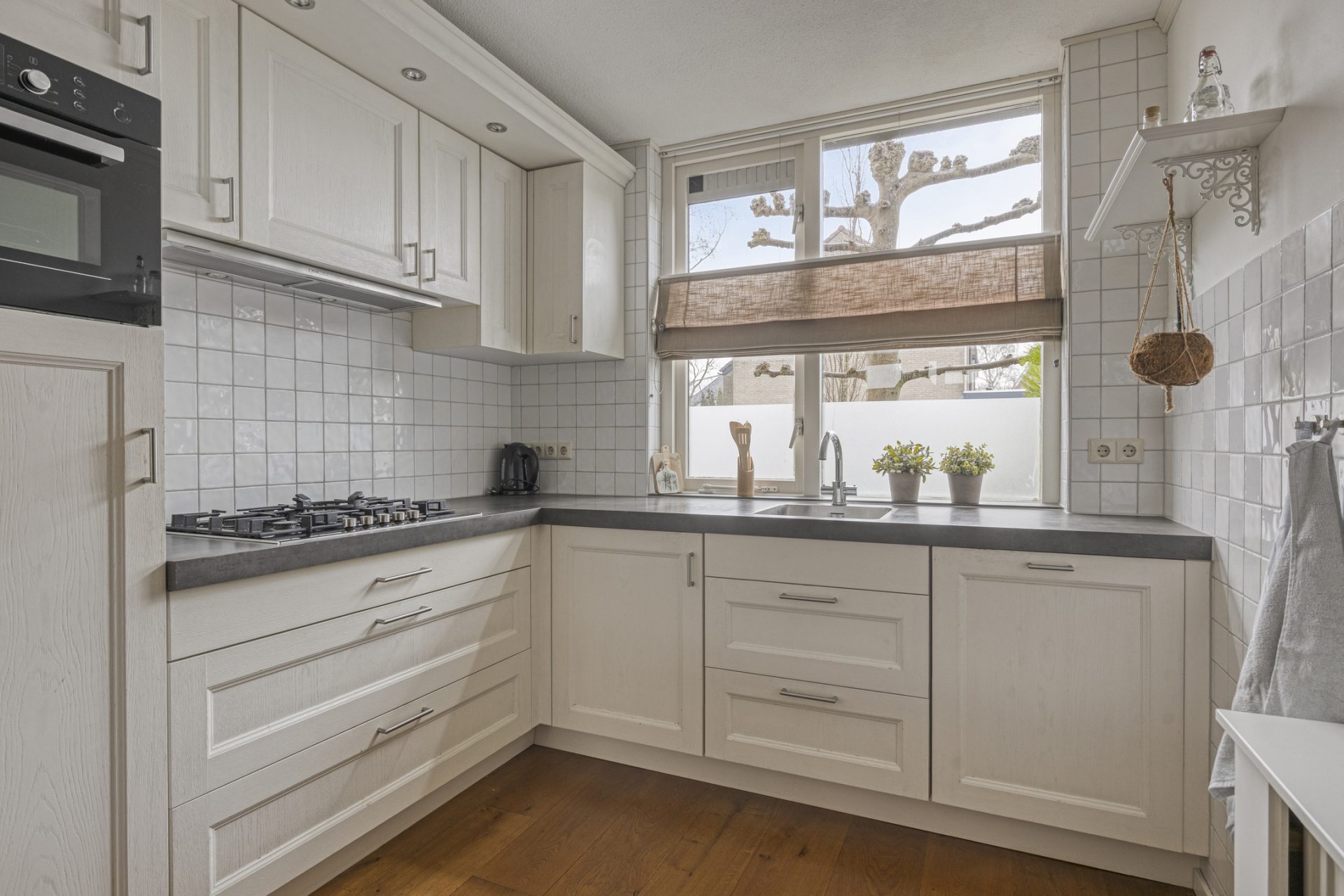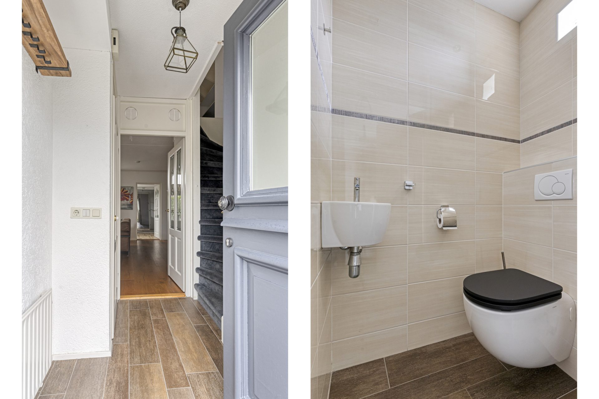 Vanuit de woonkamer loop je door naar de bijkeuken, die toegang biedt tot de ruime achtertuin met overkapping en een schuur. De tuin grenst direct aan een speeltuin aan de achterzijde van de woning, wat deze woning bijzonder geschikt maakt voor gezinnen met kinderen.