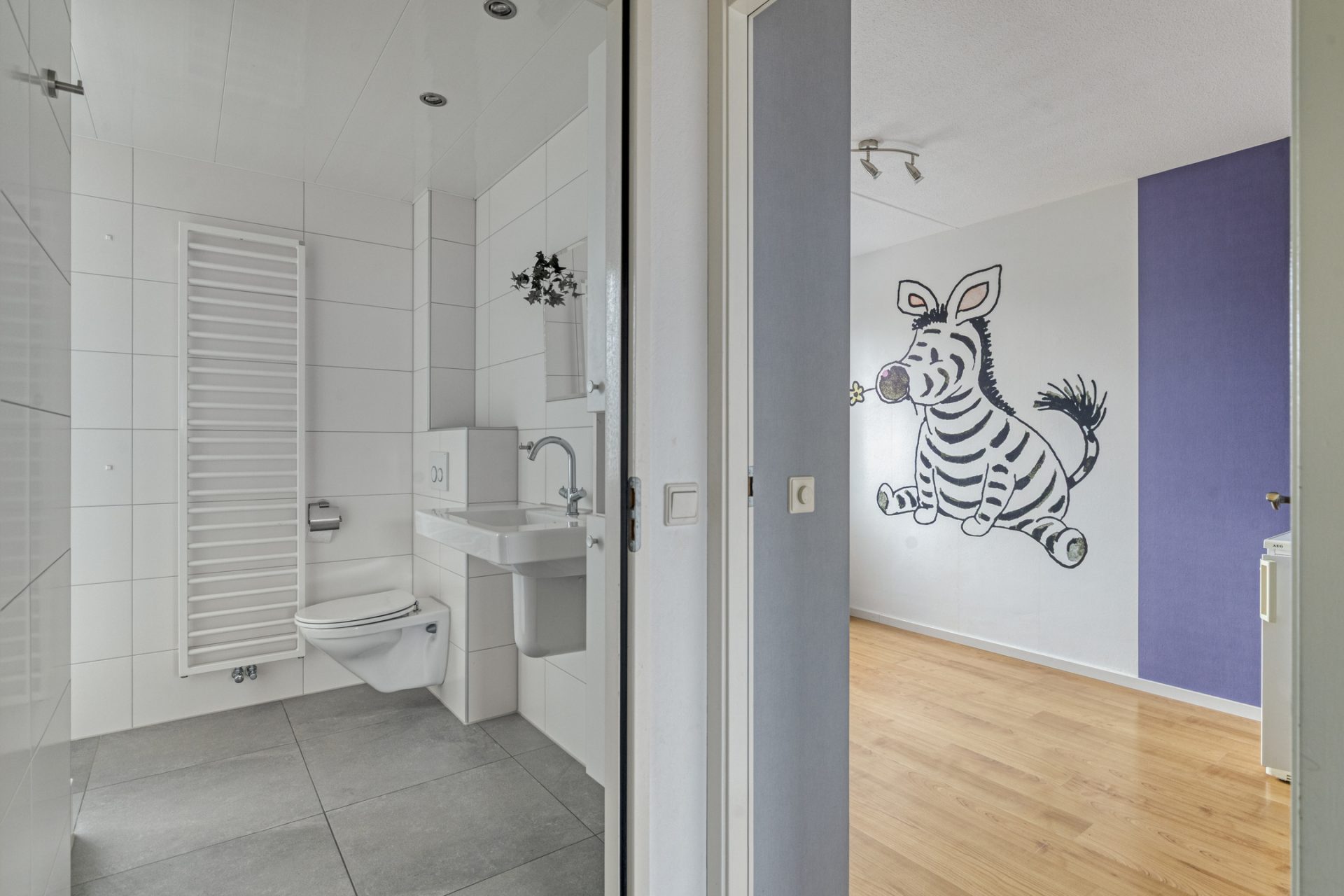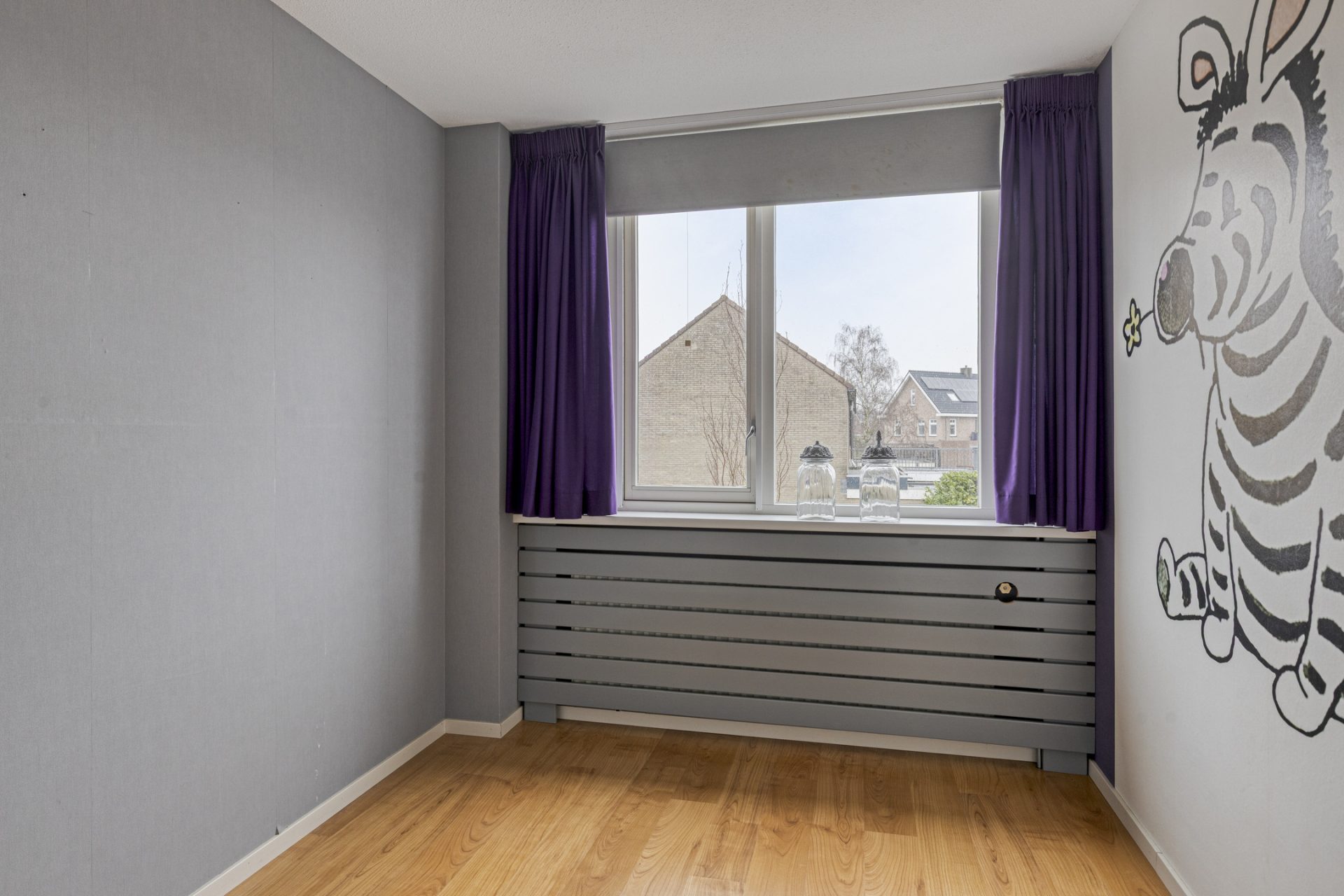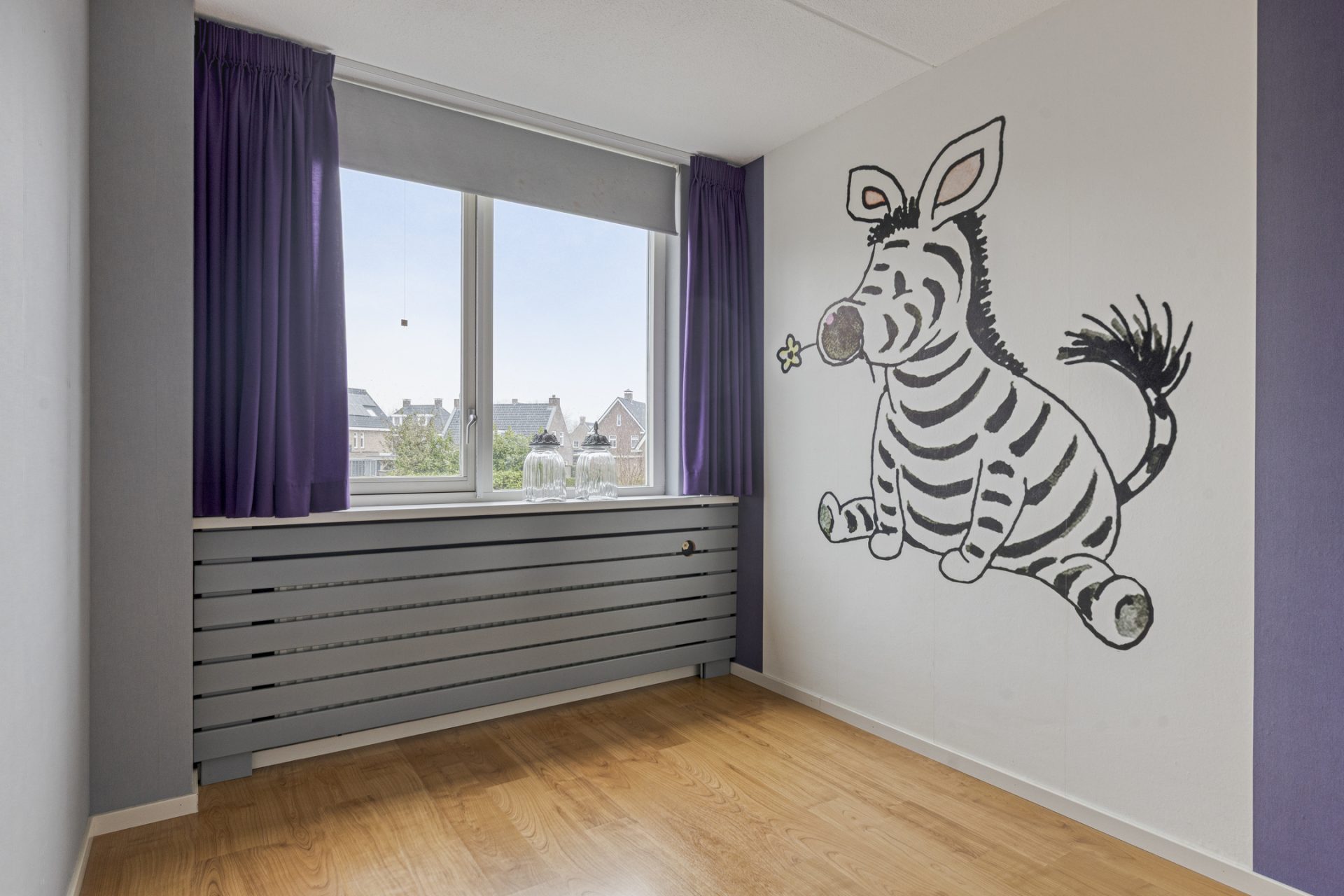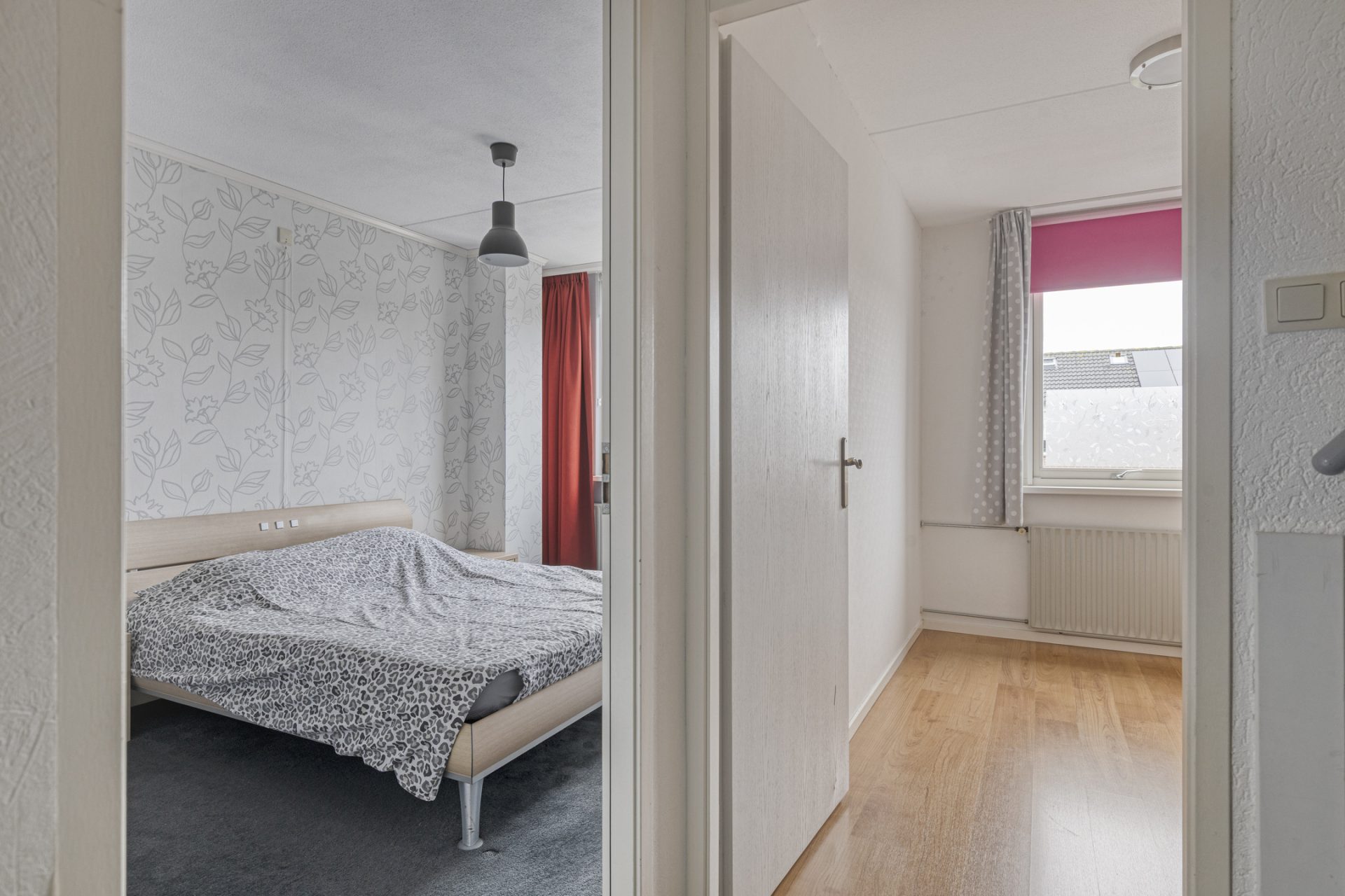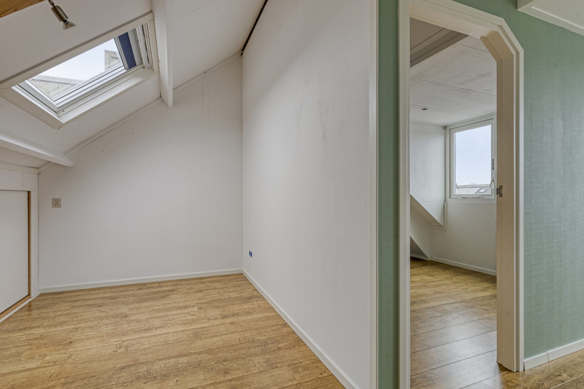 De tweede verdieping biedt plaats aan de vierde slaapkamer van de woning. Daarnaast bevindt zich hier de aansluiting voor de wasmachine en is er voldoende ruimte om de was op te hangen of extra bergruimte te creëren. De kamer biedt bovendien volop bergruimte, fraai weggewerkt achter schuifdeuren, wat zorgt voor een rustige en opgeruimde uitstraling.